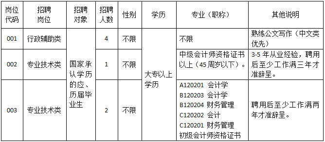 4.年齡35周歲以下,即1987年5月15日以后出生。專業(yè)技術(shù)類年齡可相應(yīng)放寬,詳見表格(招聘崗位及有關(guān)要求)。
