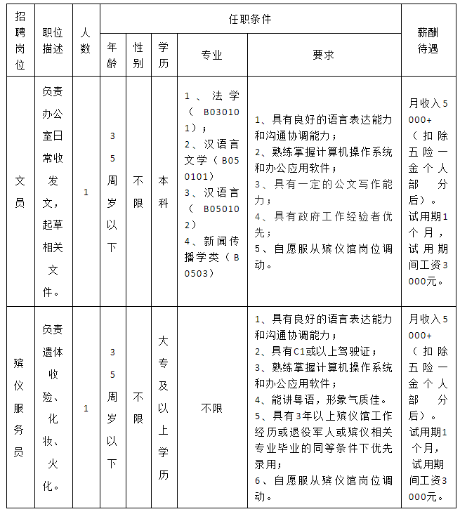 5.熱愛(ài)殯葬事業(yè),具有正常履行職責(zé)的身體條件、心理素質(zhì)和符合職位要求的工作能力;