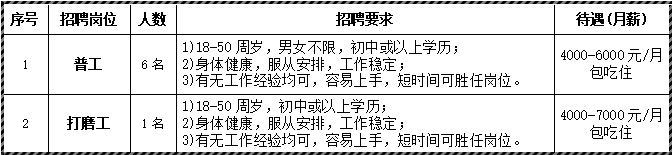 嶄新的標(biāo)準(zhǔn)工業(yè)廠房,工作環(huán)境舒適,新裝修的宿舍,設(shè)施齊全,居住環(huán)境溫馨。享受國(guó)家法定有薪假期、生日福利、節(jié)日福利、年終福利、公司年會(huì)、旅游等。本公司訂單充足穩(wěn)定,長(zhǎng)白班,待遇好,包吃住,準(zhǔn)時(shí)發(fā)放工資。所招崗位的工作內(nèi)容均有人教,晉升和加薪空間大。歡迎來(lái)公司面試或電話詳細(xì)了解!