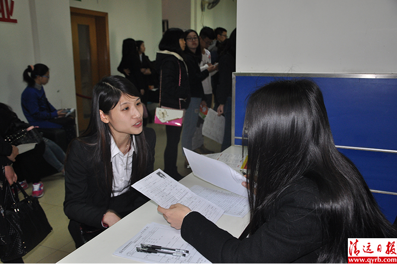 求職人員大多是應(yīng)屆畢業(yè)生以及即將畢業(yè)在讀生,如清遠(yuǎn)職業(yè)技術(shù)學(xué)院等職校則專門組織學(xué)生來求職。在讀大二的清職院學(xué)生小陳希望找到實(shí)習(xí)工作,她應(yīng)聘的是某公司董事長助理,經(jīng)過一輪面試后,招聘人員告訴她目前暫不適合溝通傳達(dá)類工作,建議應(yīng)聘行政文員類,最終她聽取了建議。